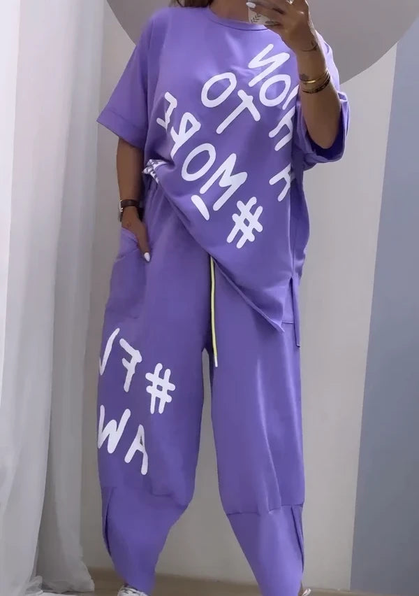 Women��s Casual Loose Fit Two-Piece T-Shirt & Pants Set